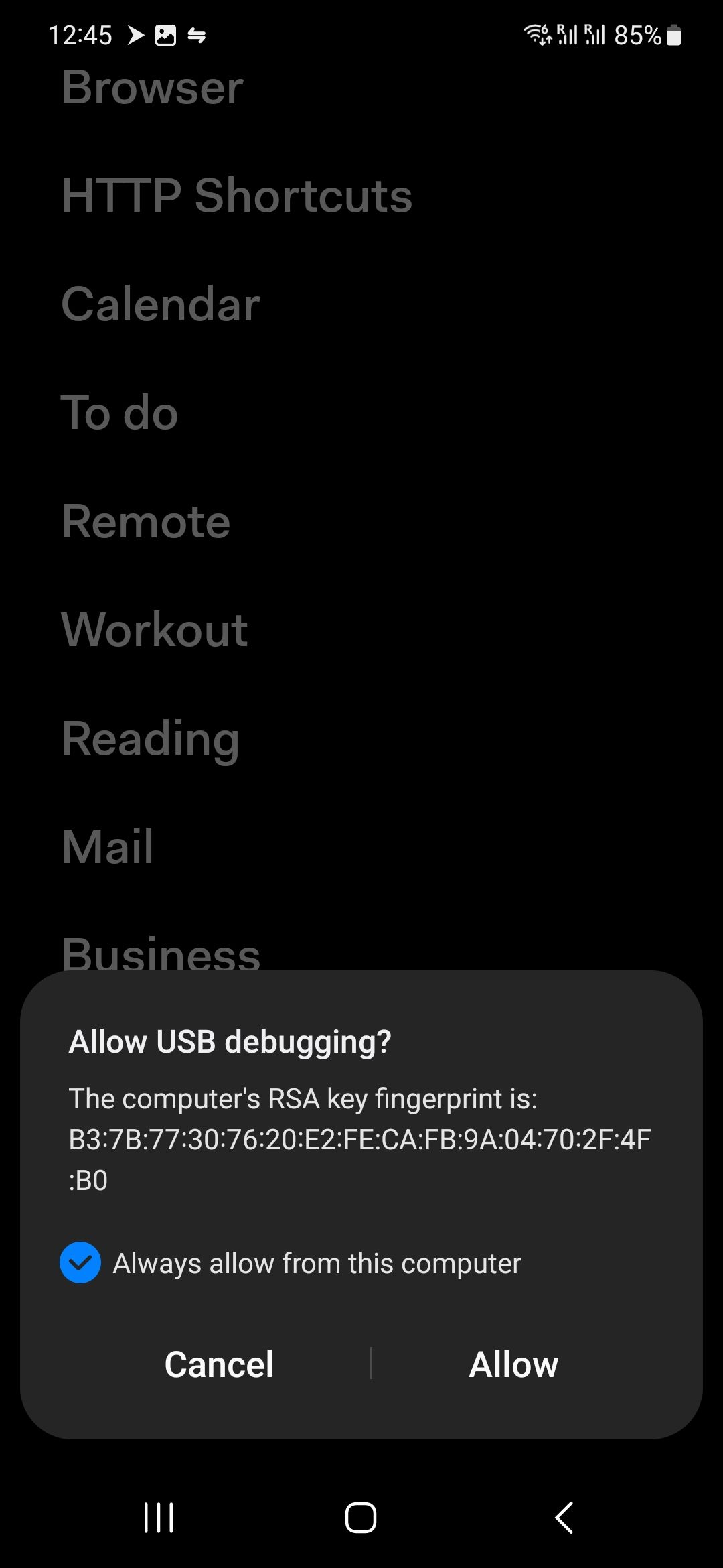- Connected phone to RaspPi and go through the popups on your phone: always allow USB debugging, Allow data access computer to access it (In general, always allow everything).