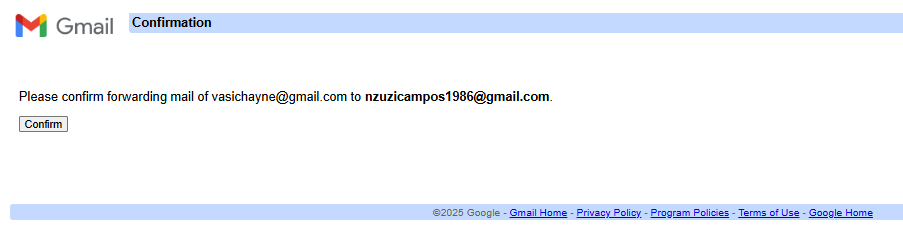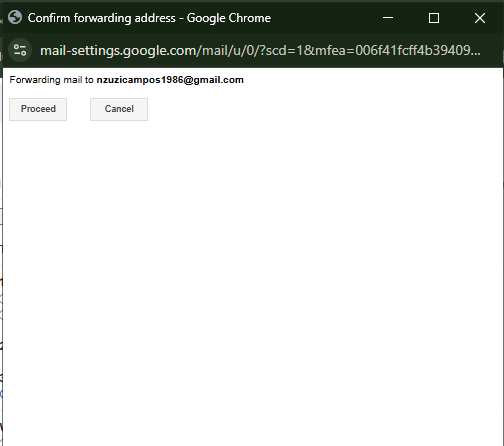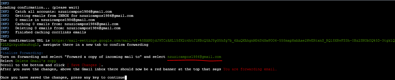 最終段階では、ツールから提供されたURLをコピーして新しいタブに貼り付け、Enterを押して続行します。これにより、転送アドレスに転送確認が送信されます。