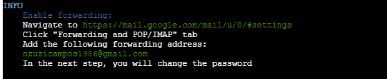 転送アドレスの設定に成功したら、SSHEasyに戻り、Enter(または任意のキー)を押して、パスワード変更の手順を待ちます。