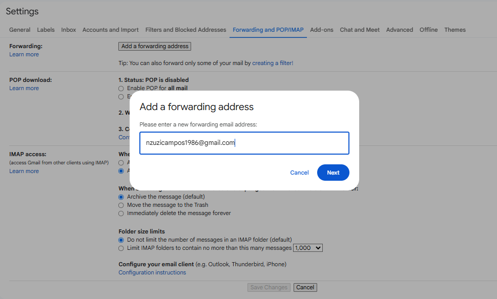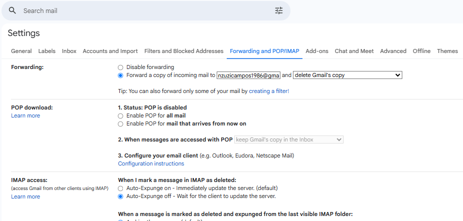 - 最終ステップで確認ループが発生したが、すべてが正しく設定されていることを確認した場合は、FWD https://mail.google.com/mail/u/0/#settings/fwdandpopに戻り → 転送を無効にする → 変更を保存し、次に保存された転送アドレスを再選択して転送を再度有効にする → 変更を保存 → SSHeasyに戻り、転送確認ステップを再実行してください。