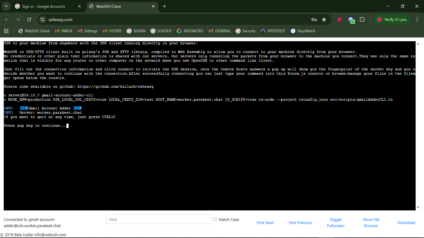 - Gmailでは簡単かつ安全にナビゲートできますが、SSHEasyで任意のキーまたはEnterを押すと次のステップ/指示に進むため注意してください。