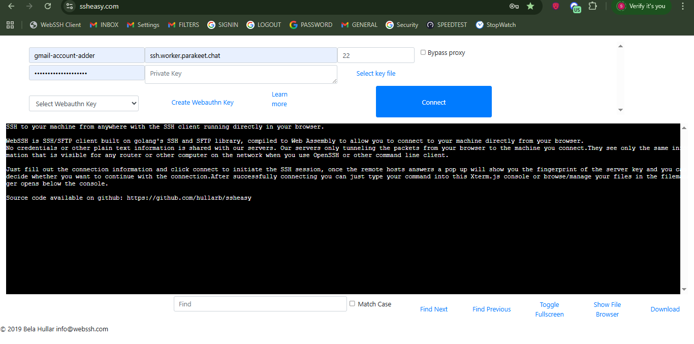 - SSHEasyにログインするには、https://www.ssheasy.com/にアクセスします