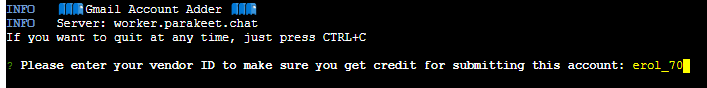 次に、ベンダーIDを入力します(これは名前の後にアカウントを処理した回数の番号を付けたものです。以下の例を参照してください。