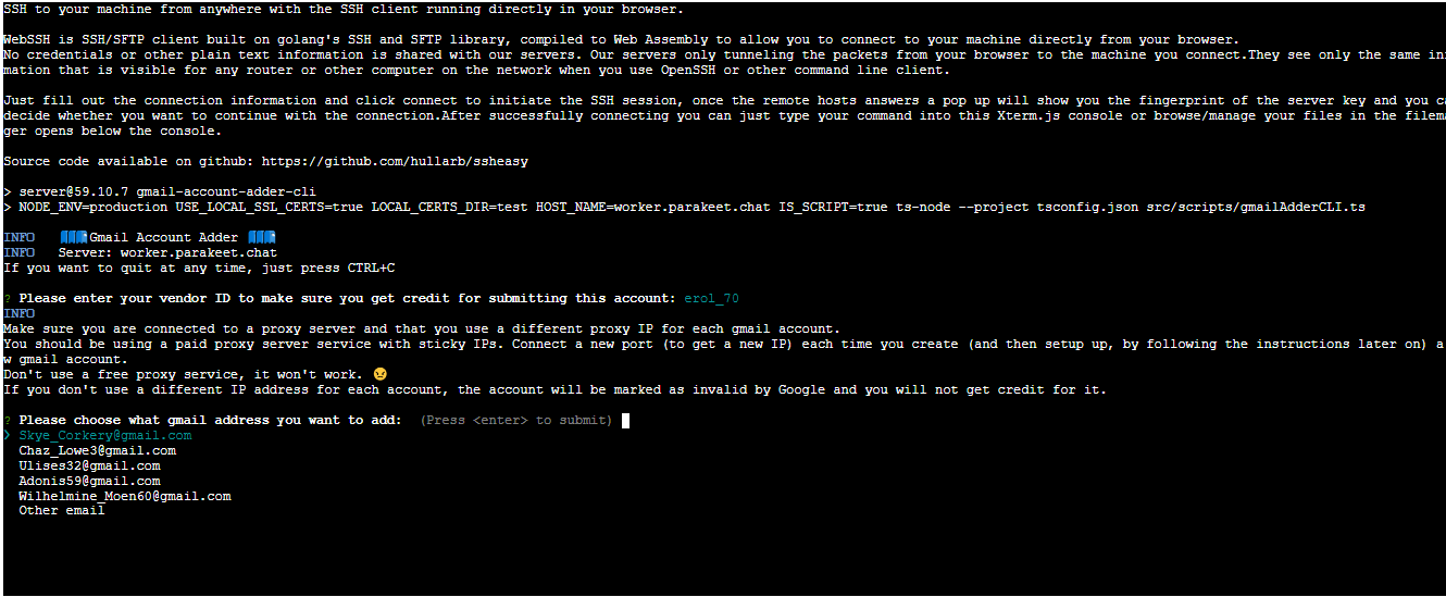- ベンダーNaimulは数ヶ月間は良かったが、最近の数ヶ月では、提供されたアカウントのほぼすべてがセットアッププロセスを完了できませんでした。「失敗」とは、ログイン時にアカウントが2FA認証を必要としたり、パスワードが間違っていたり、admin@parakeet.chatフィルター作成時に2FAを要求したりすることを意味し、ベンダー自身もIPアドレスの切り替えがアカウントを危険にさらし失敗につながると述べました。ベンダーはGmailをデータベースに追加していましたが、彼のプロセスを確認したところ、IPアドレスを切り替えておらず、パスワード変更ステップの完了を許可していなかったため、追加されたアカウントの多くがログインの問題を抱えていました。使用できないアカウントの交換も18〜24時間と非常に厳しいです。